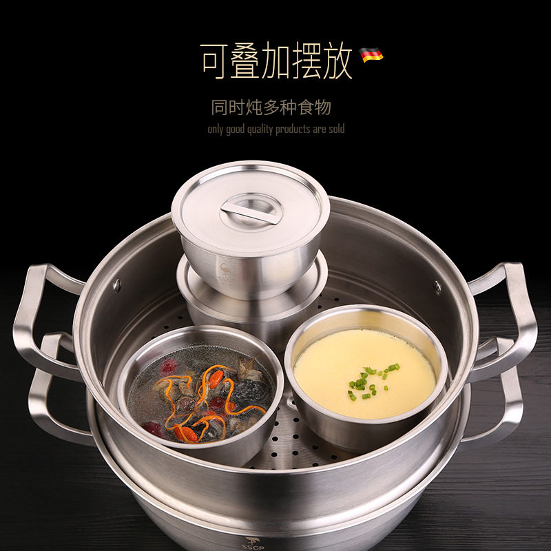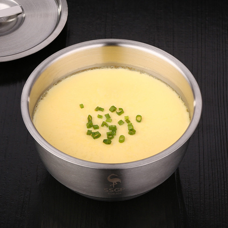 Household steamed egg bowl 304 stainless steel with lid chicken cake soup cup steamed rice baby stewed egg custard steamed cup dessert