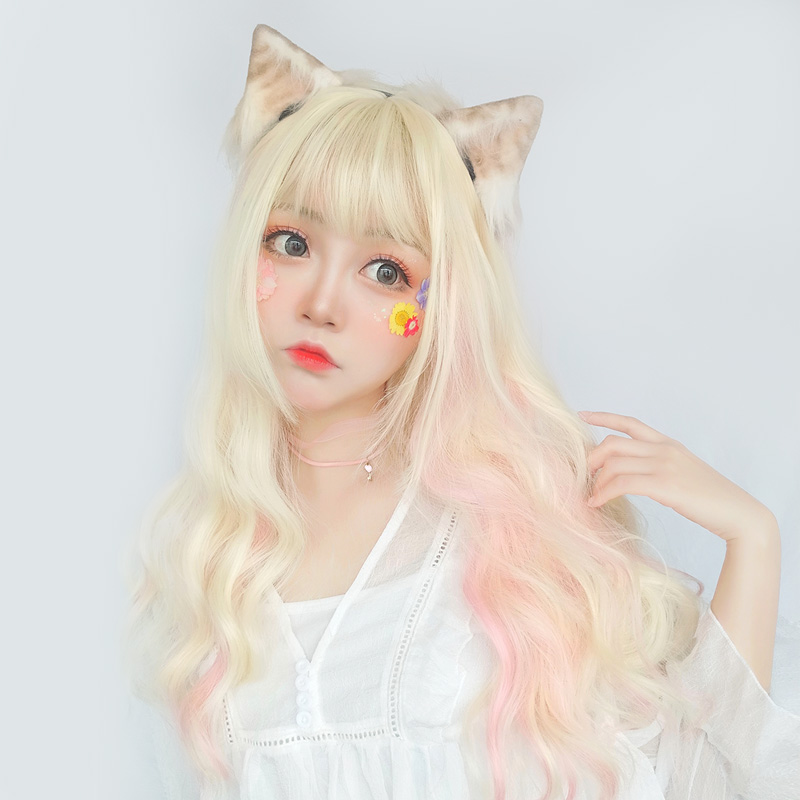 Gradual gold switch princess wig wave long curls lory Japanese Lolita Children's Secondary Dimensional Animation