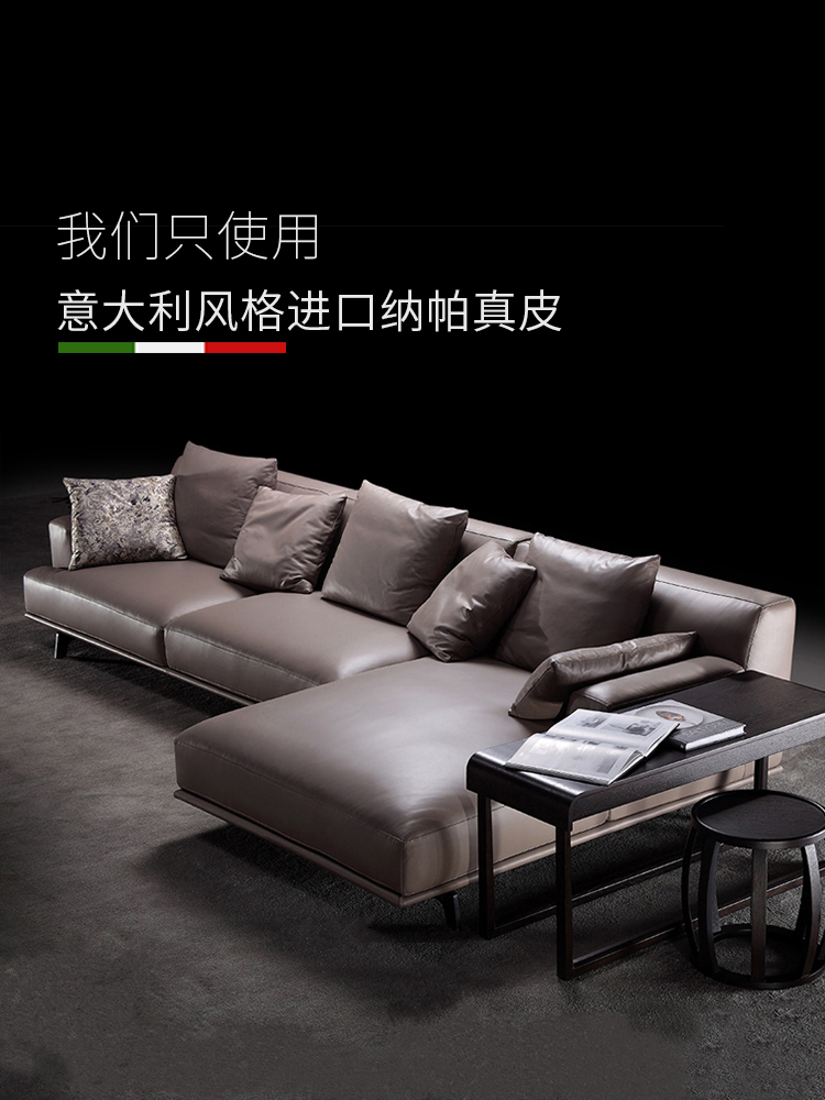 Italian style imported nappa leather (three seats) - contact surface Italian style imported nappa leather (1 3 chaise longue) - full leather Italian style imported nappa leather (pedal) - contact surface