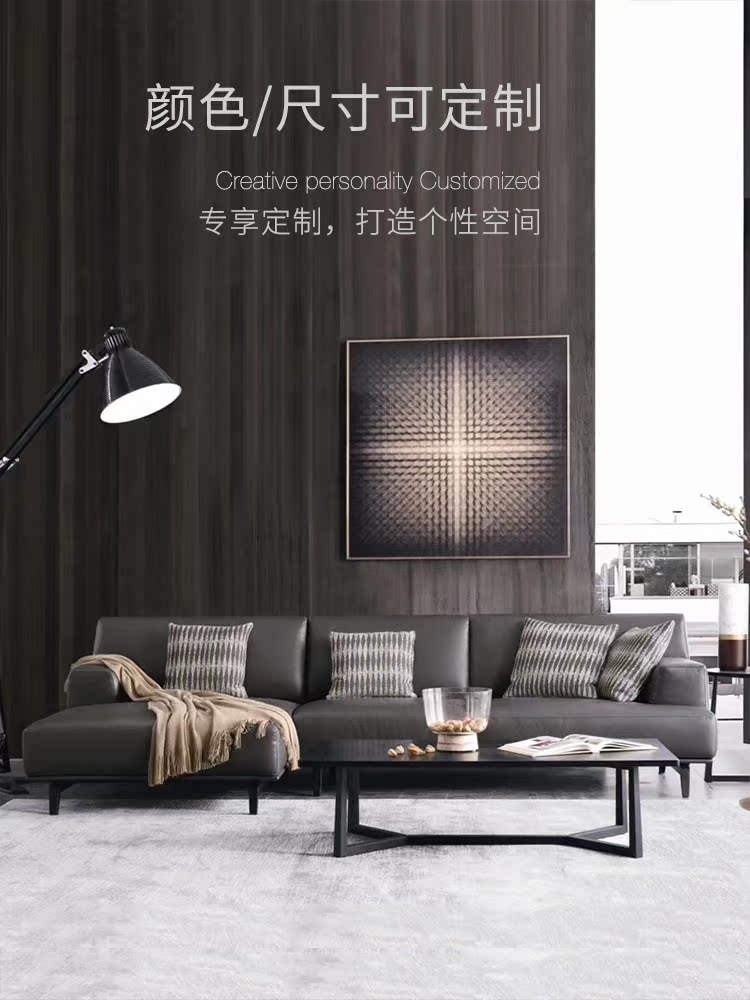 Leather sofa modern minimalist Nordic living room furniture Italian style minimalist complete Nordic small apartment sofa chaise