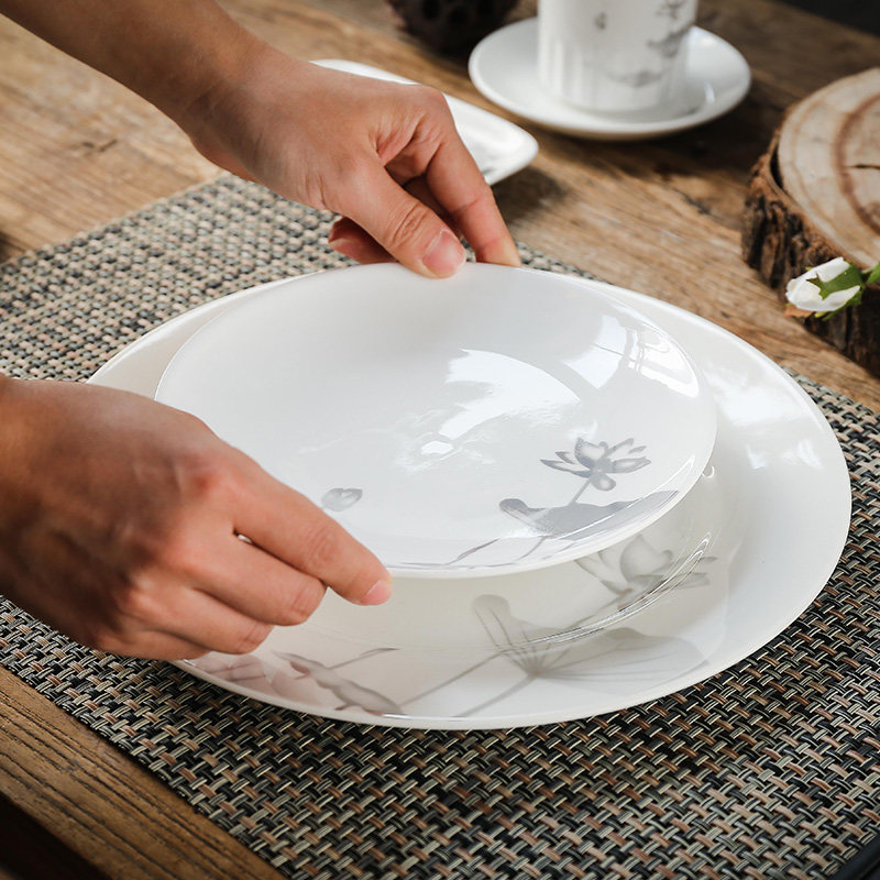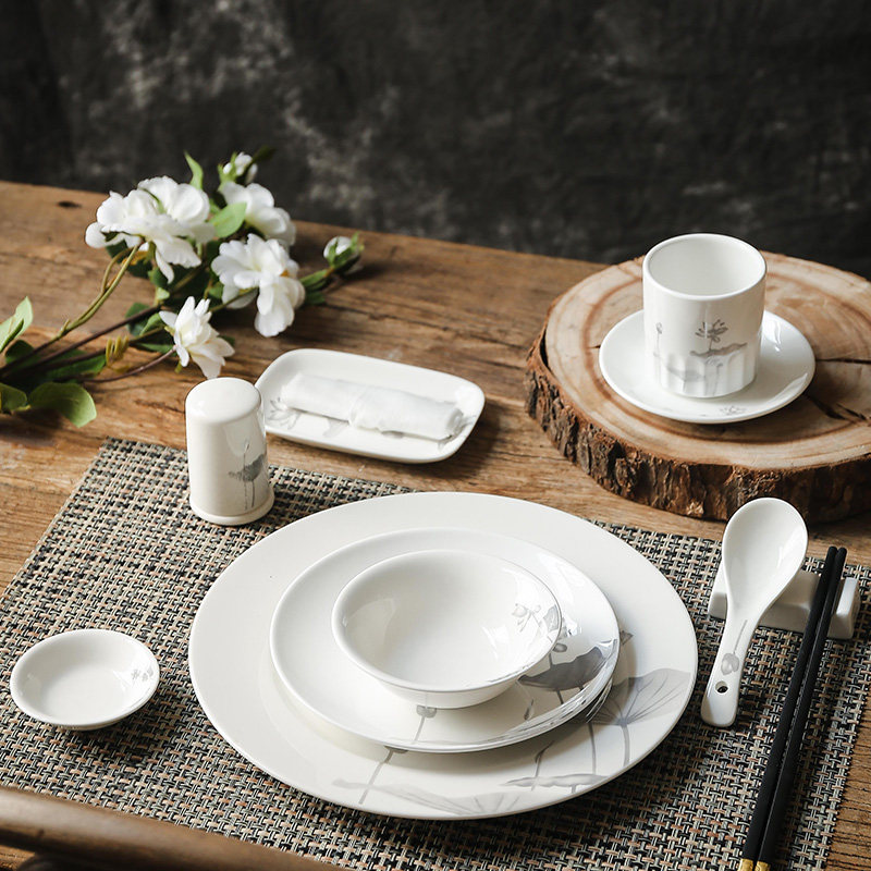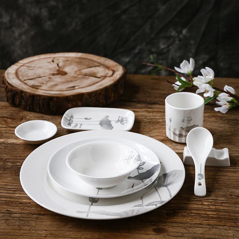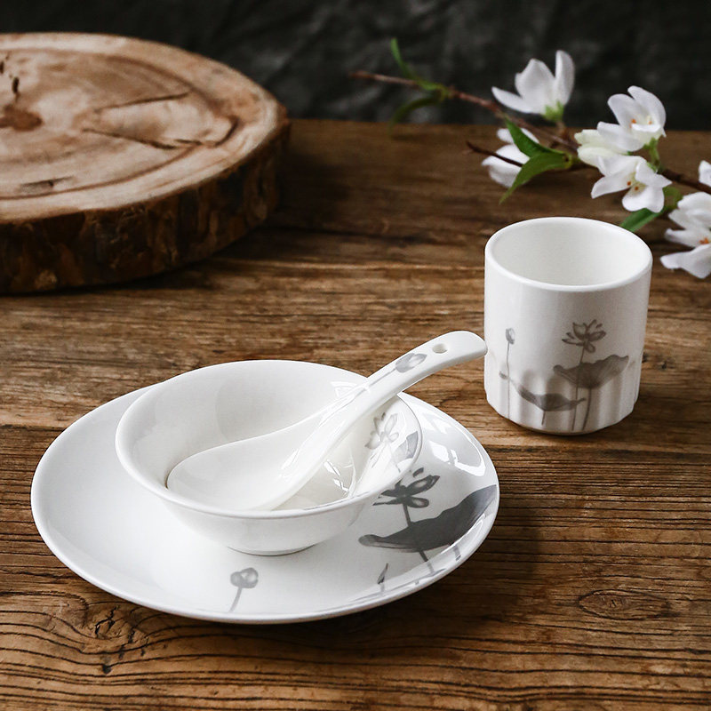 Lotus Flower Pattern Cutlery Dish Suit Peach Glue Oatmeal Bowl of Winged Bowl hotel with dining room with dining room