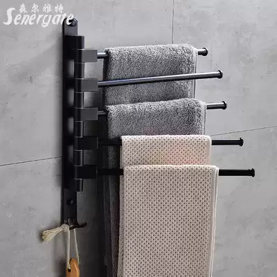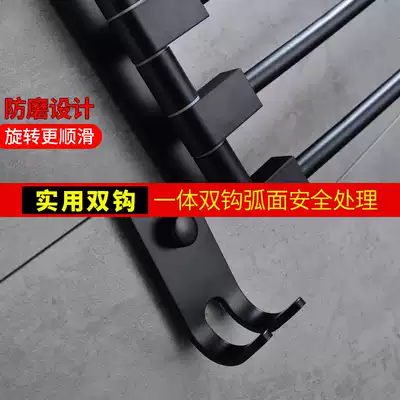 Towel rack rotating multi-bar towel bar non-hole movable hanging bar bathroom folding rack black space aluminum three-pole