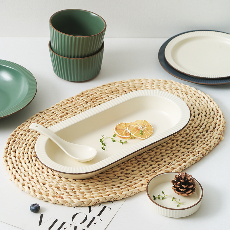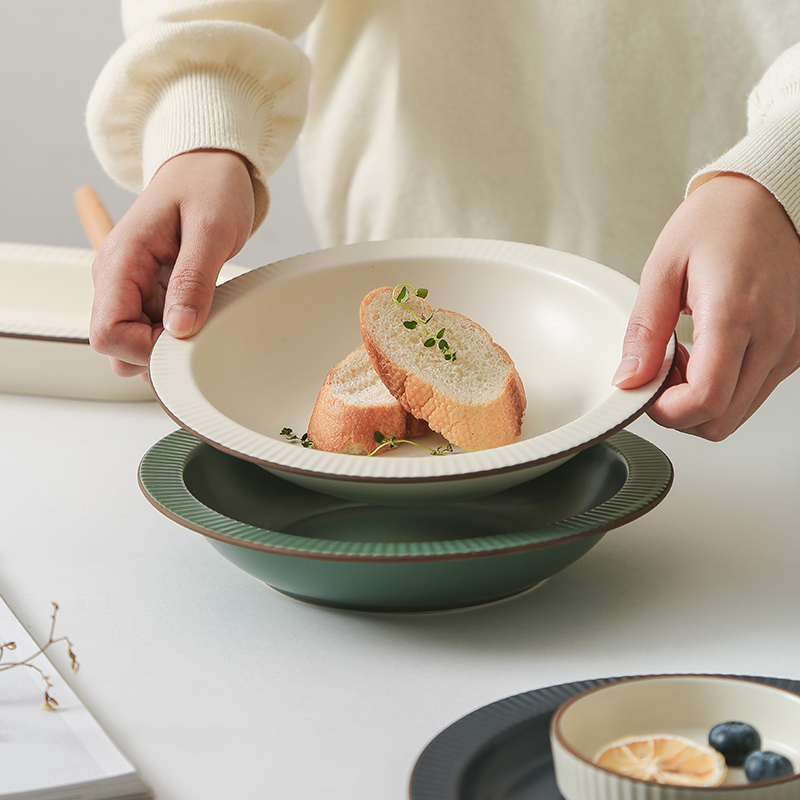 1000ML without cover) with ear soup bowl white almond 7 5 inches disc white almond 10 inches plate dark blue 8 7 inches square plate retro green 7 5 inches round