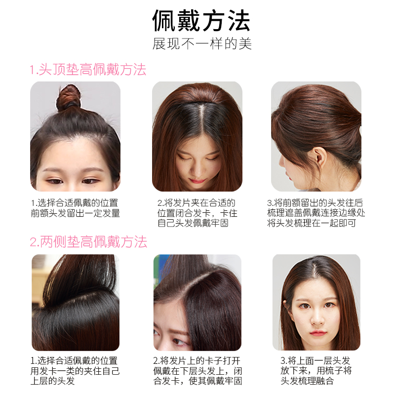 Pad hair on both sides of the top of the head thickened fluffy pad real hair invisible back of the head hot dyed straight hair without trace hair patch female