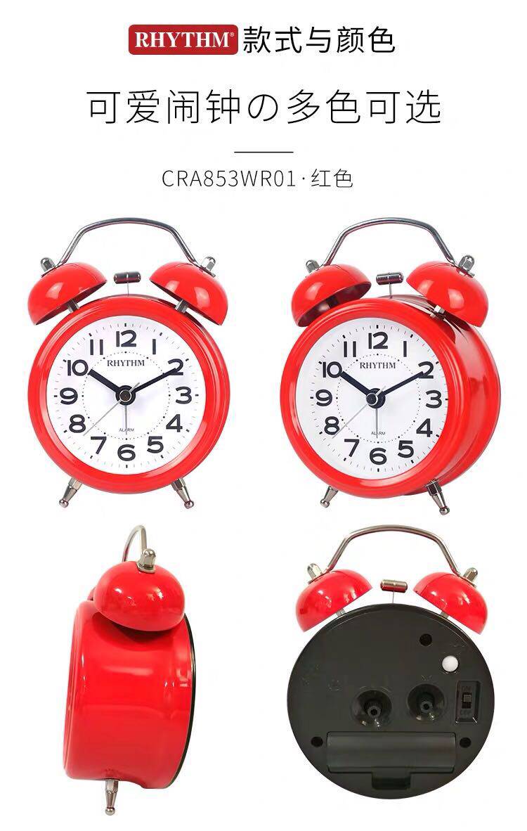 Japanese RHYTHM Live Alarm Clock Living Room Students Ultra-quiet Bed Light Light CRA853