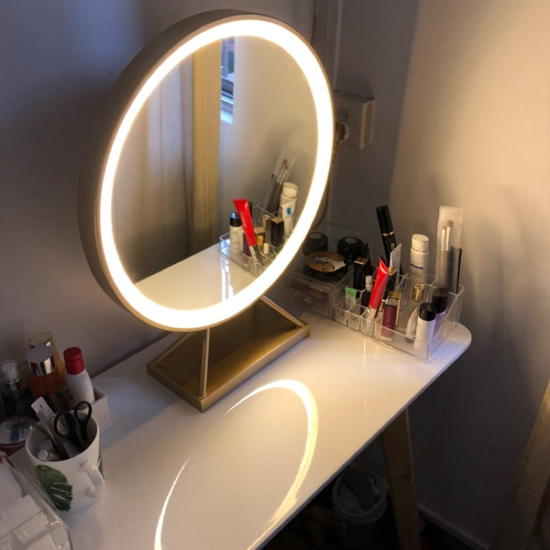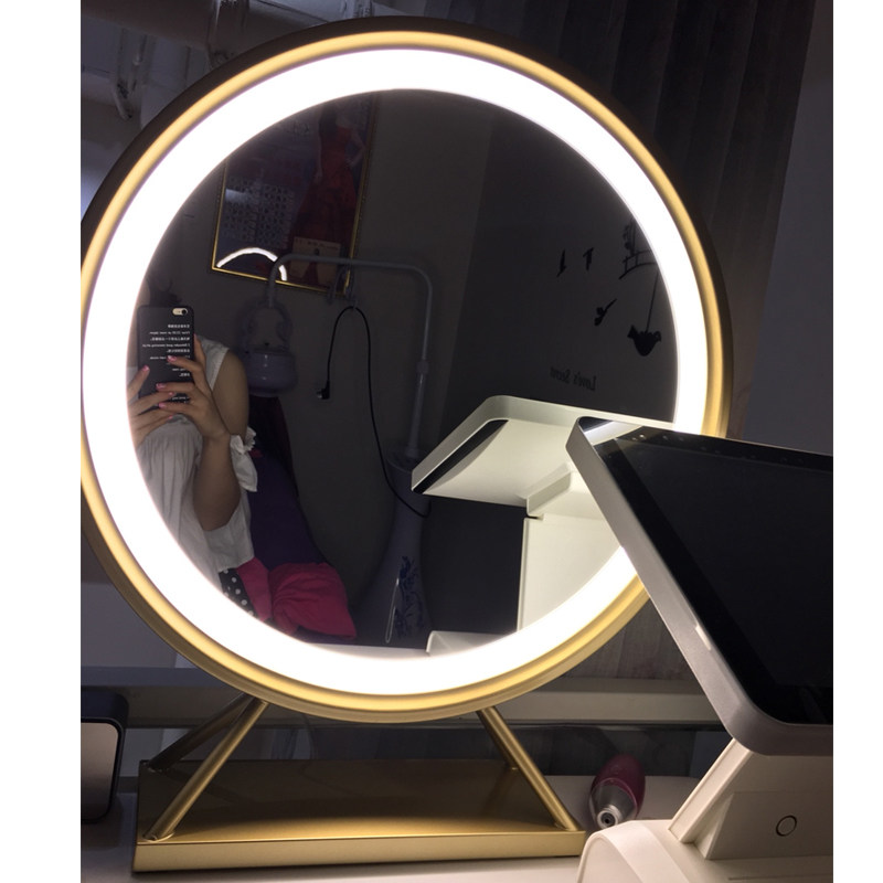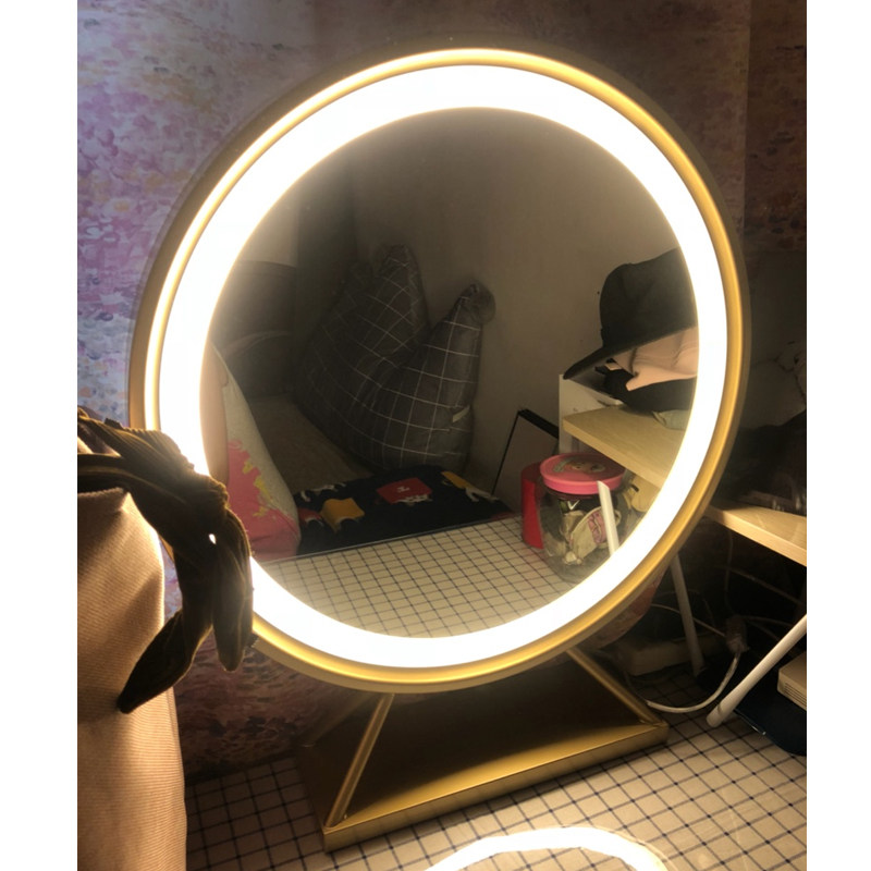 ins net red desktop large number round makeup mirror LED lamp mirror tonic light mirror pink desktop cosmetic mirror with lamp