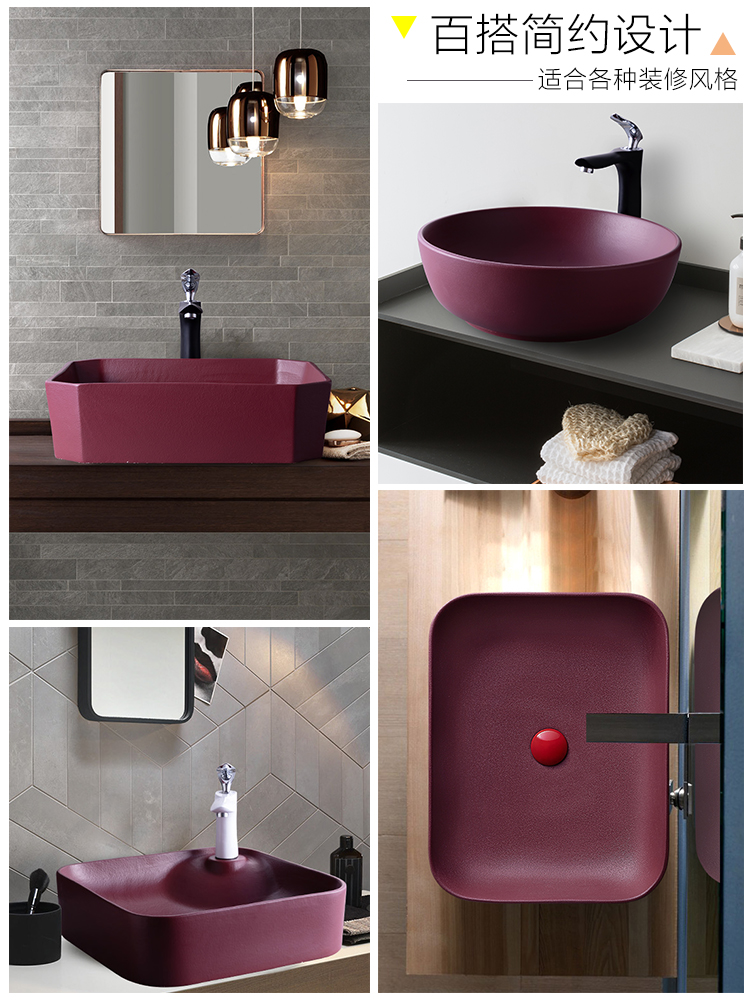 Crimson powder room on-counter washbasin small size washbasin ceramic artist with simple creative washbasin