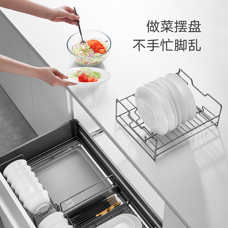 L series flagship Starry Gray-600 cabinet double-layer (dish basket + flat basket) - damping guide