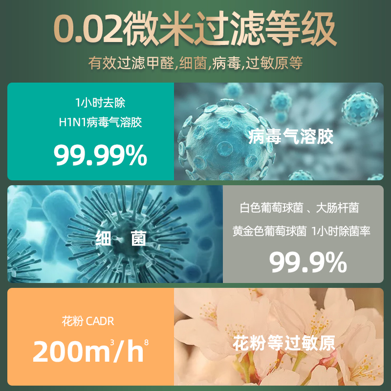 Germicidal and formaldehyde-proof anti-virus smoke-removing de-dusting, except for the particulate matter other than VOC