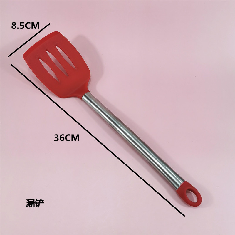Clearance silicone shovel non-stick pan special high temperature resistant stainless steel pot shovel frying spoon cooking shovel kitchen utensils set