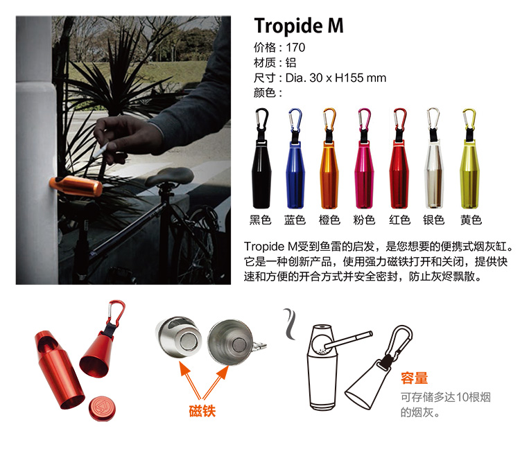 Japan StreamTrail creative personality design eco-friendly field outdoor portable with lid metal ashtray