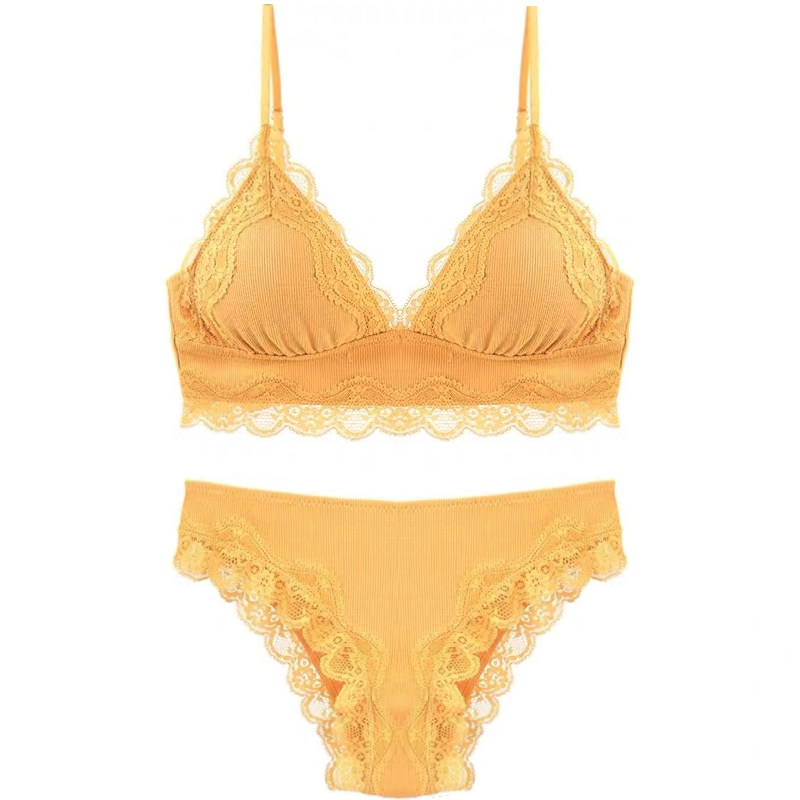 Woman's Secret Comfortable Threaded Cotton No Steel Rings Triangle Cup Lingerie Set French Bralette Bra Small Chest