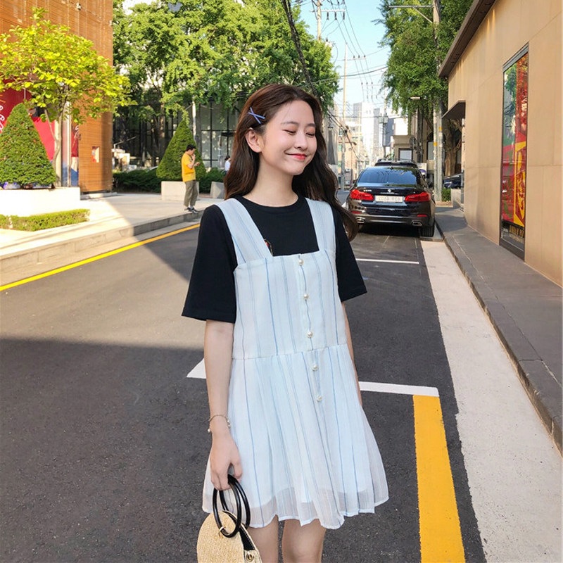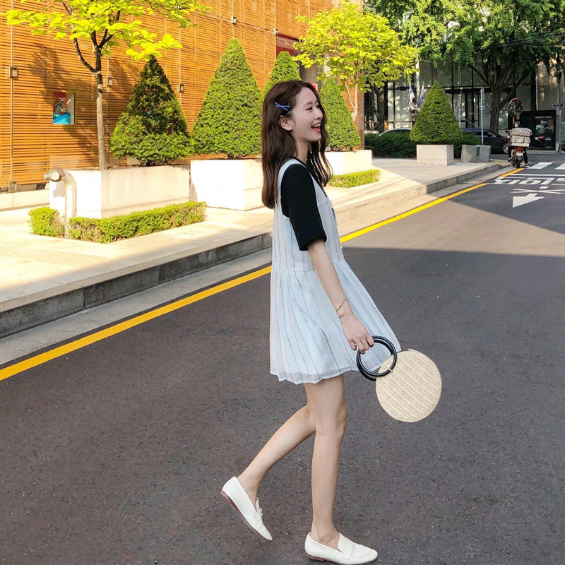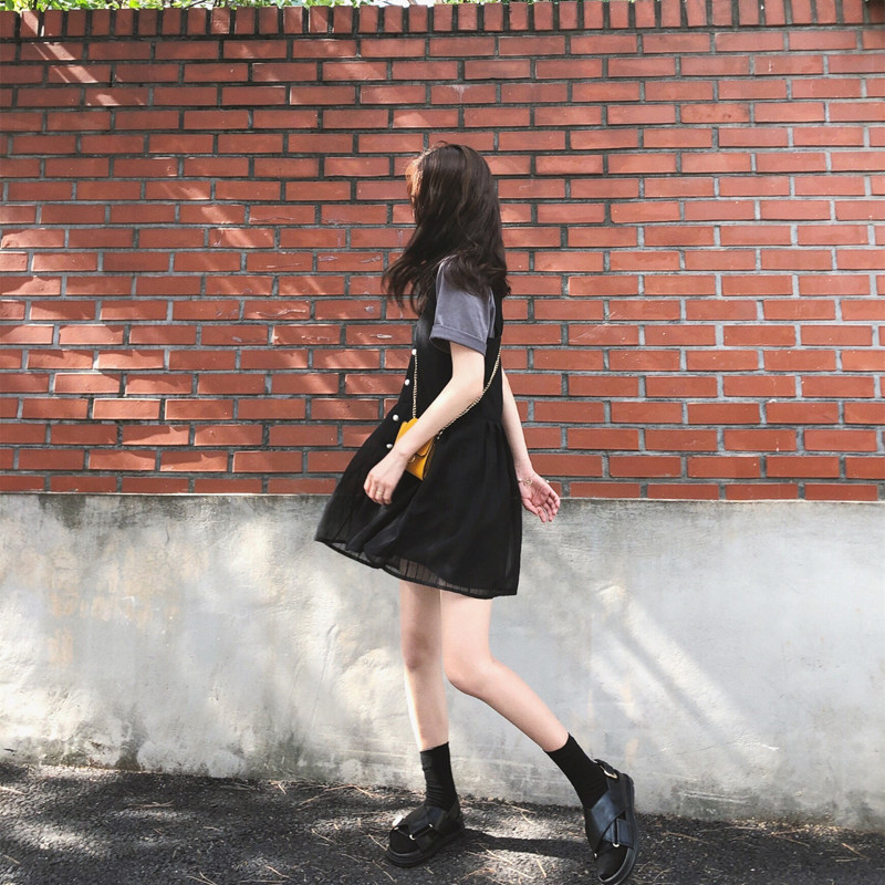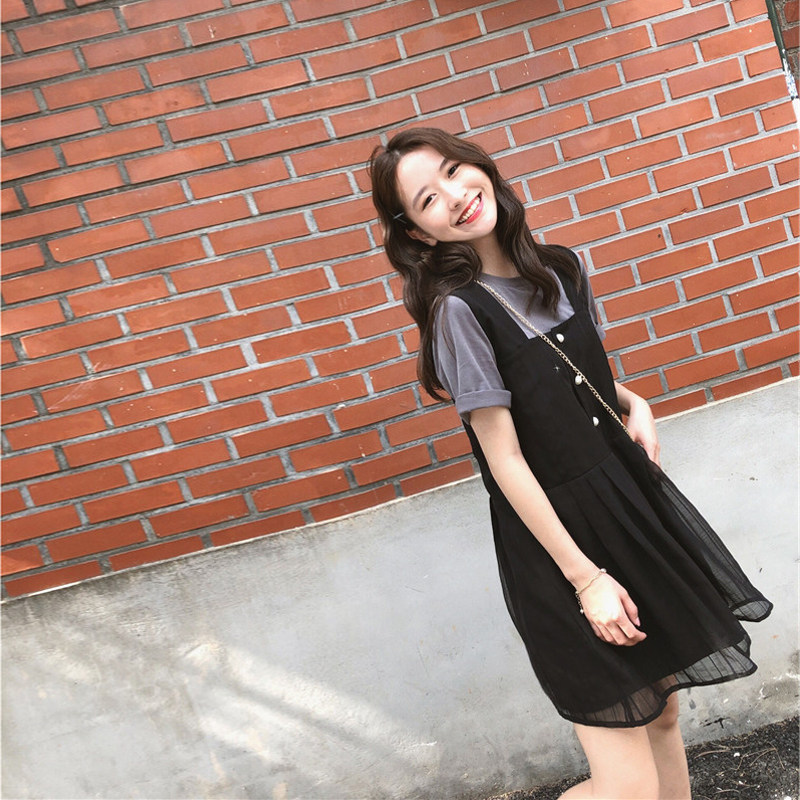 Grey short T-shirt black color cuddling bag dress black short T-shirt white cuddling bag dress
