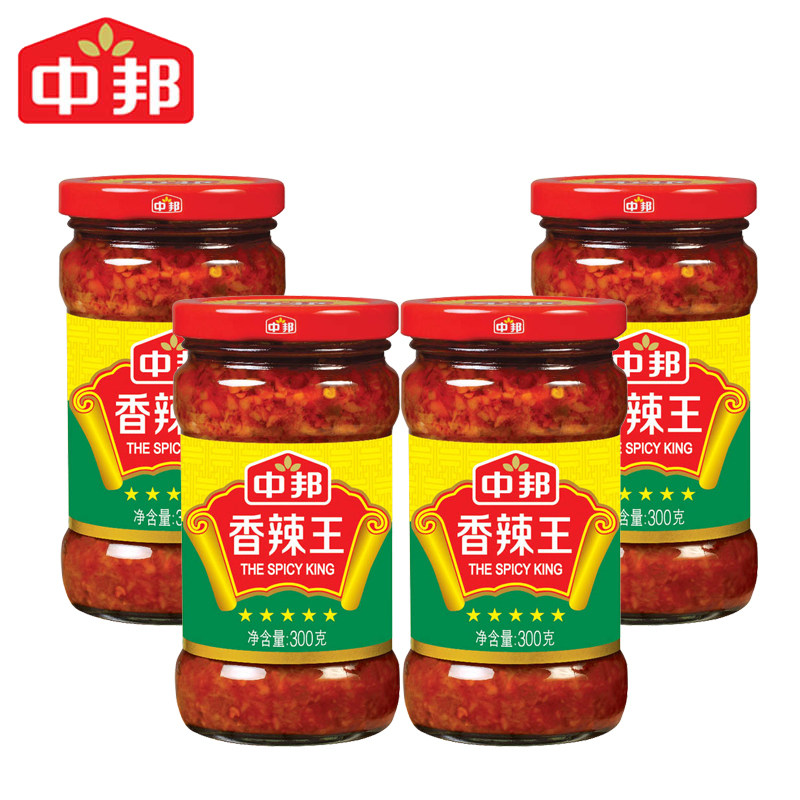 Middle Bang Savory Spicy King 300g * 4 bottles of chili sauce with spicy open flavor Next meal Vegetable Bull Jumpy Hot Pot Sauce
