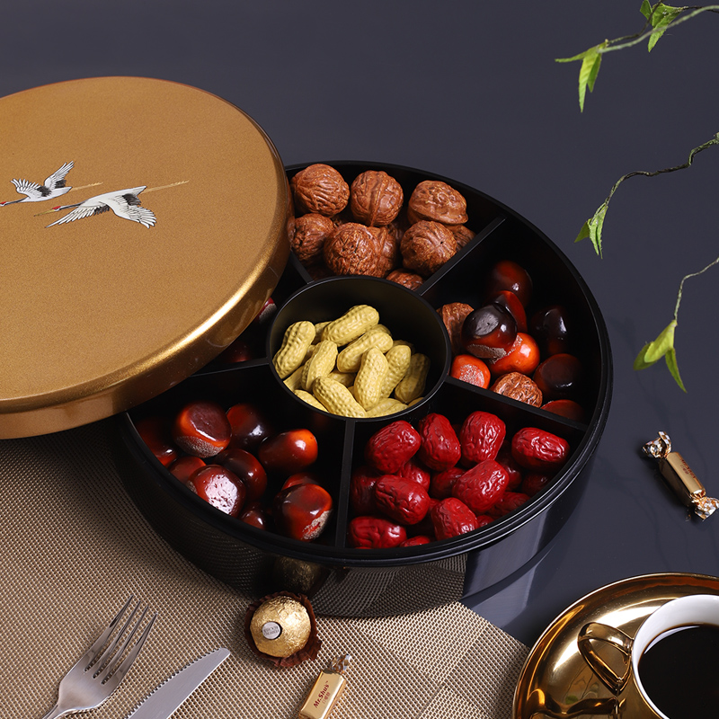 Chinese style hand-painted fairy cranes map dried fruit box Chinese light luxury lacquerware split commercial candy box high-grade hotel supplies