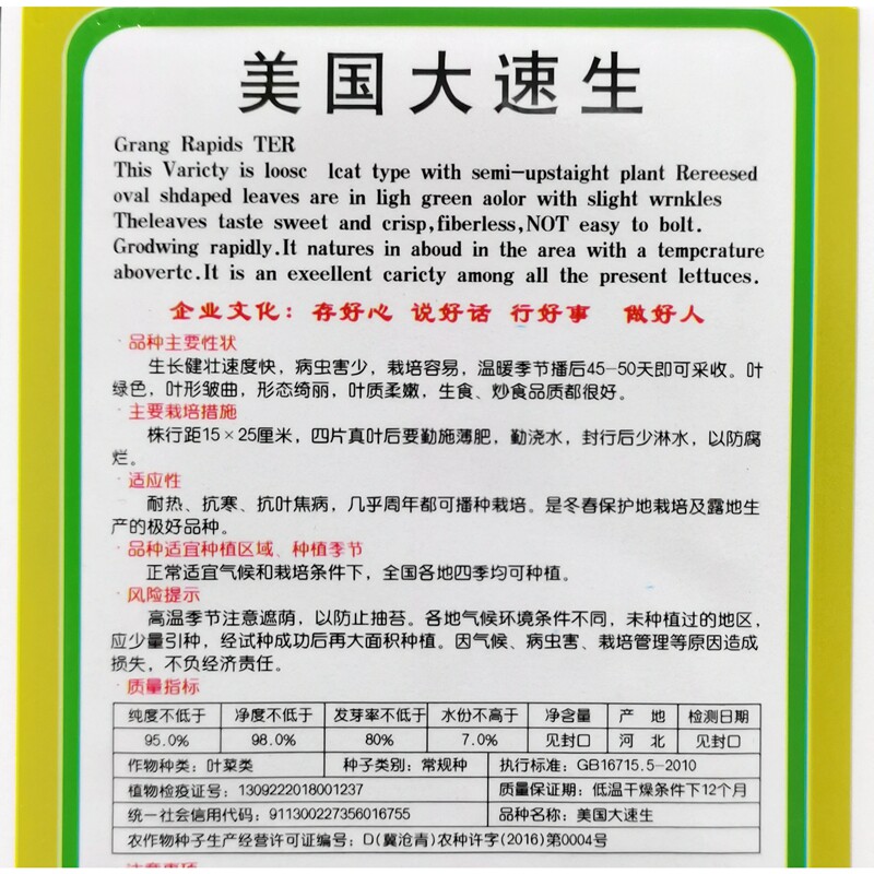U.S. large fast-growing lettuce seeds broken loose leaves wrinkled leaves not heart-resistant cold-resistant four seasons sowing seed vegetables 3 grams