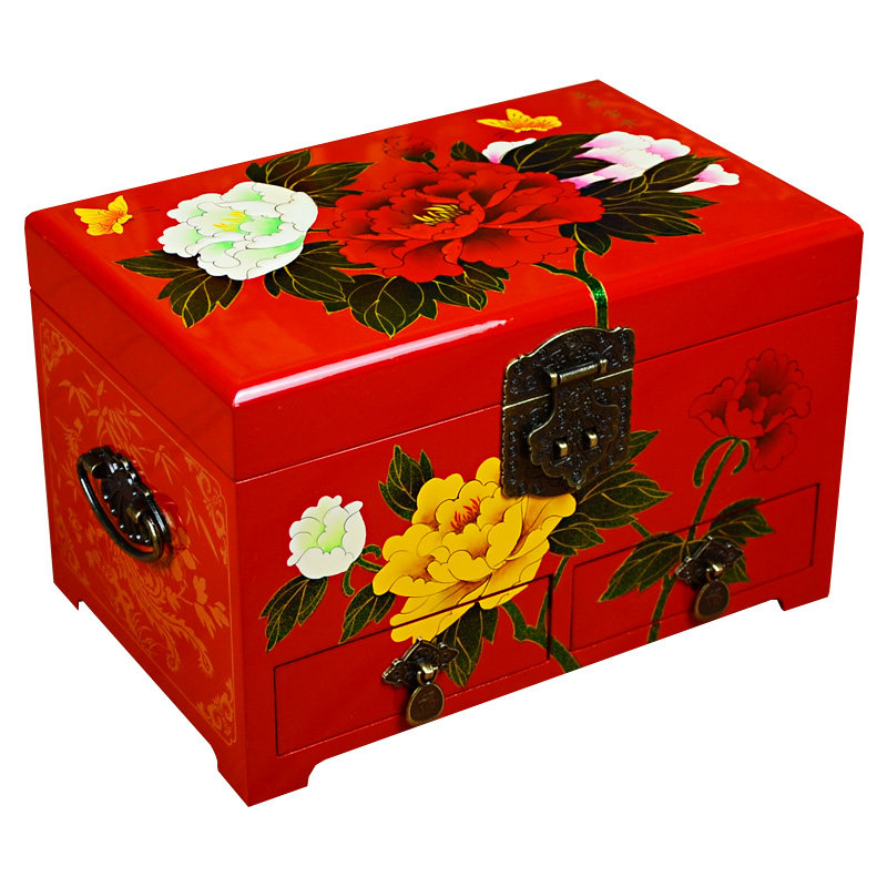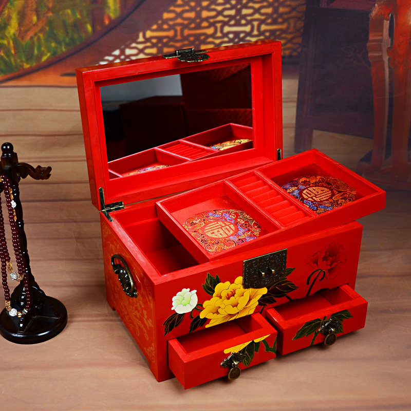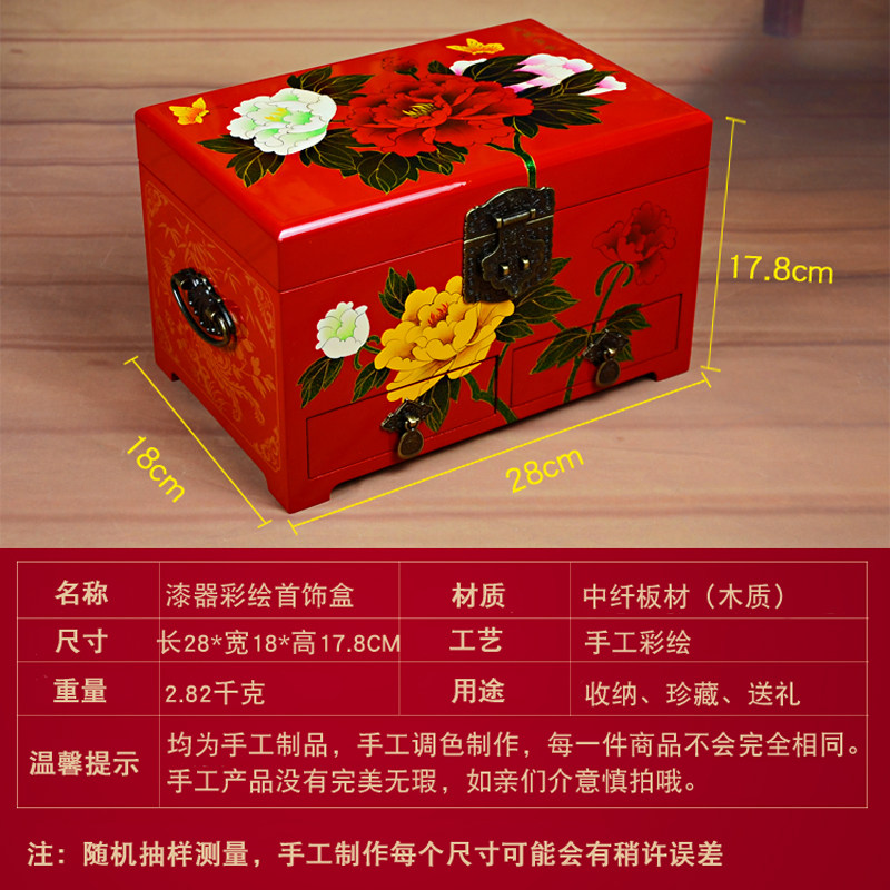 China Wind Pure Handmade Lacquered Ware Pendulum Piece First Accessories Box Drawer Jewelry Containing Box Wedding Dowry Traditional Feature Gift