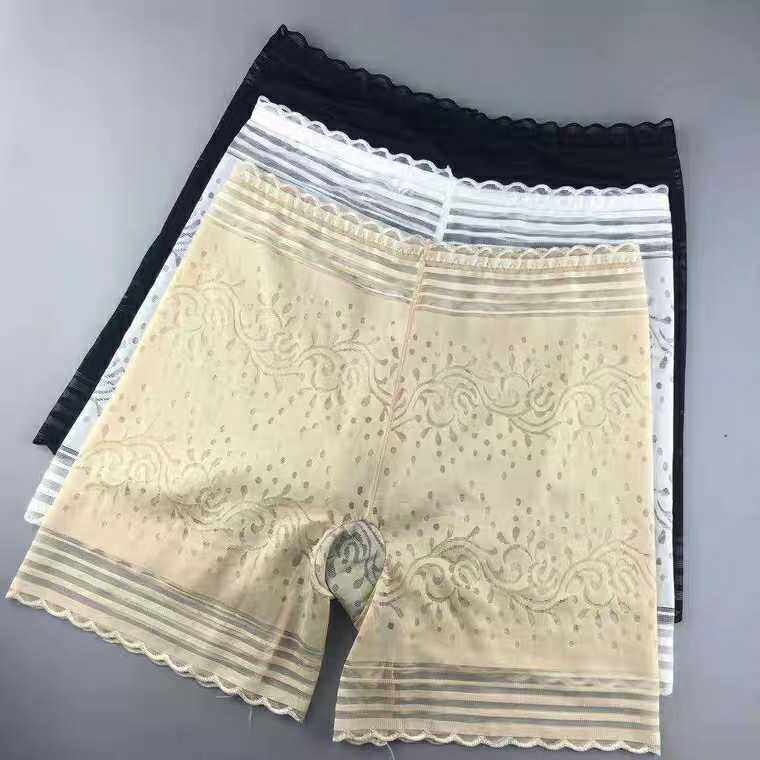 Ultra-thin, breathable and comfortable high-elastic jacquard mesh lace anti-light leggings women's safety pants three-point shorts women