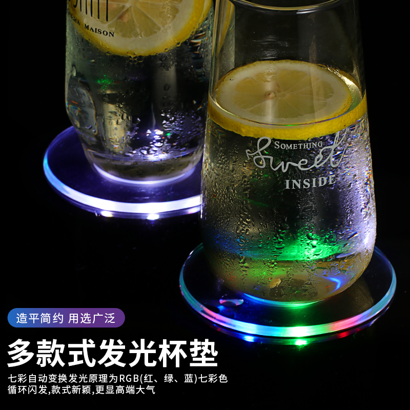 2019 ultra-thin transparent bar cocktail light-emitting coaster base light-emitting light light cup bottom bartender milk tea light