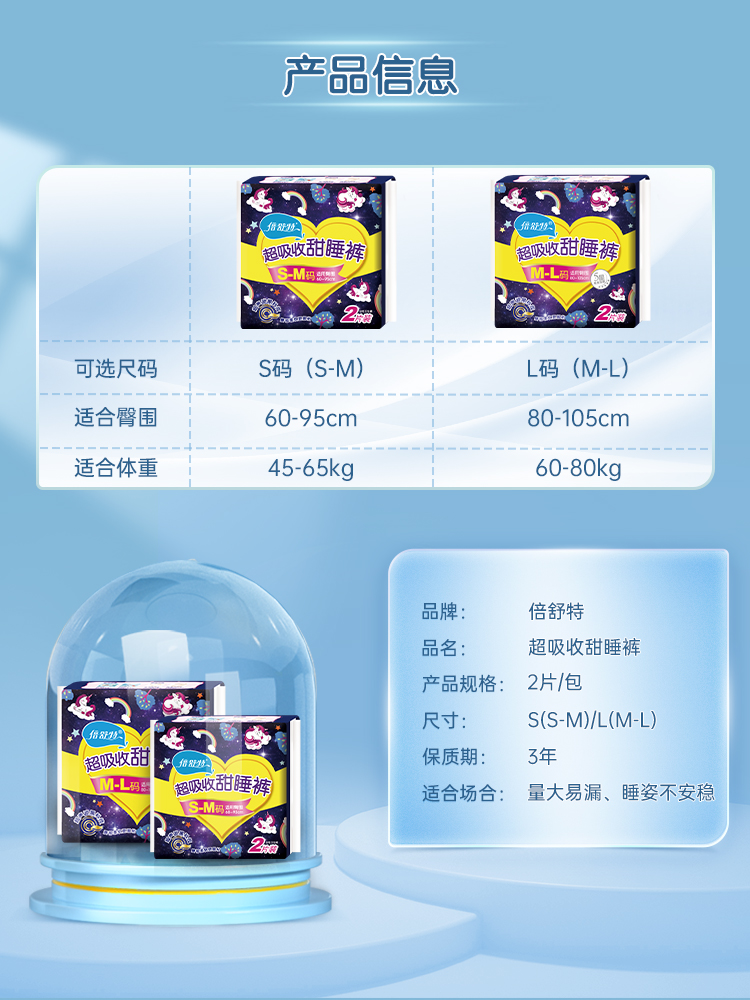 Beishute sweet pajama pants night pants type sanitary napkin relief pants aunt towel leak-proof sleep pants menstrual period 16 pieces