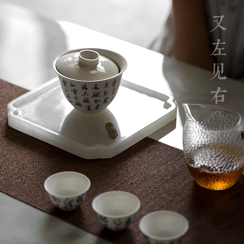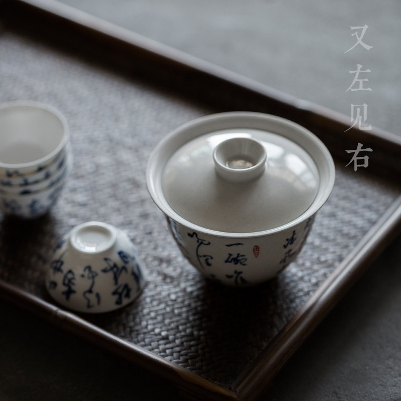 Jingdezhen handmade three-cai cover bowl Teacup Retro Kung Fu tea set White porcelain ceramic three-bubble table tea bowl single
