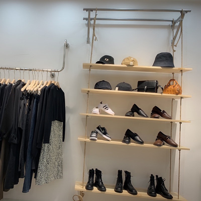 Simple clothing store shoe store shoe rack display rack wall multi-layer bag rack shoe rack hemp rope rack creative