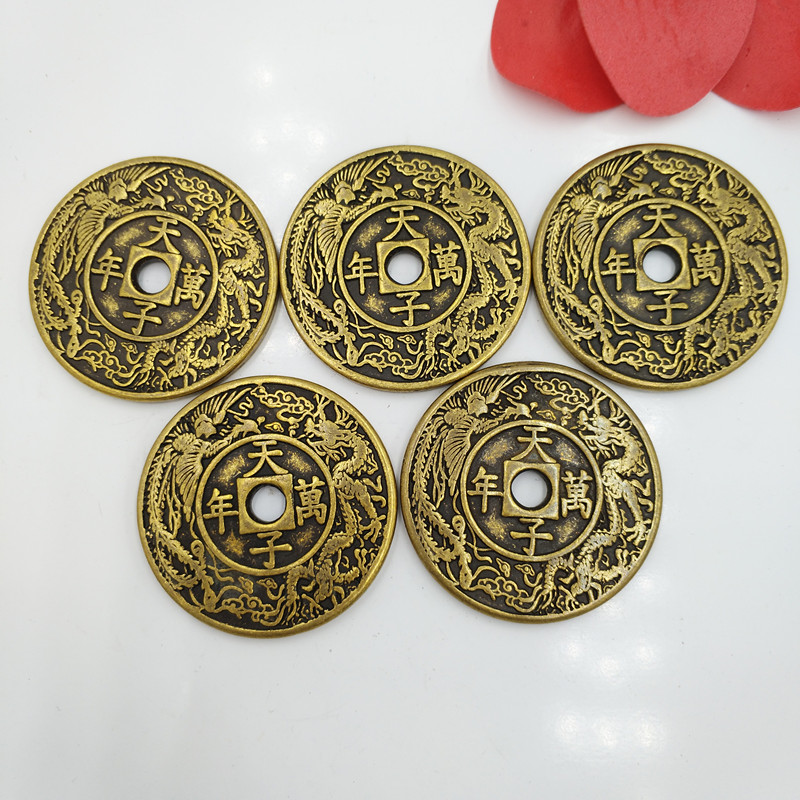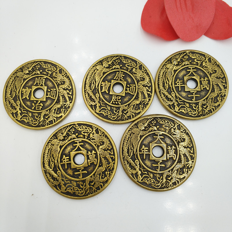 Ancient coins Qing Dynasty Five Emperors money dragon and Phoenix version thickened Five Emperors money Ten Emperors money Copper money suit spend money Town house get rich