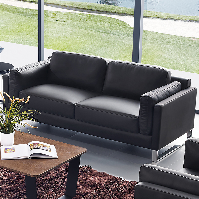 Office business sofa leather art black simple modern company high-end reception room Qiadan reception area three-person combination