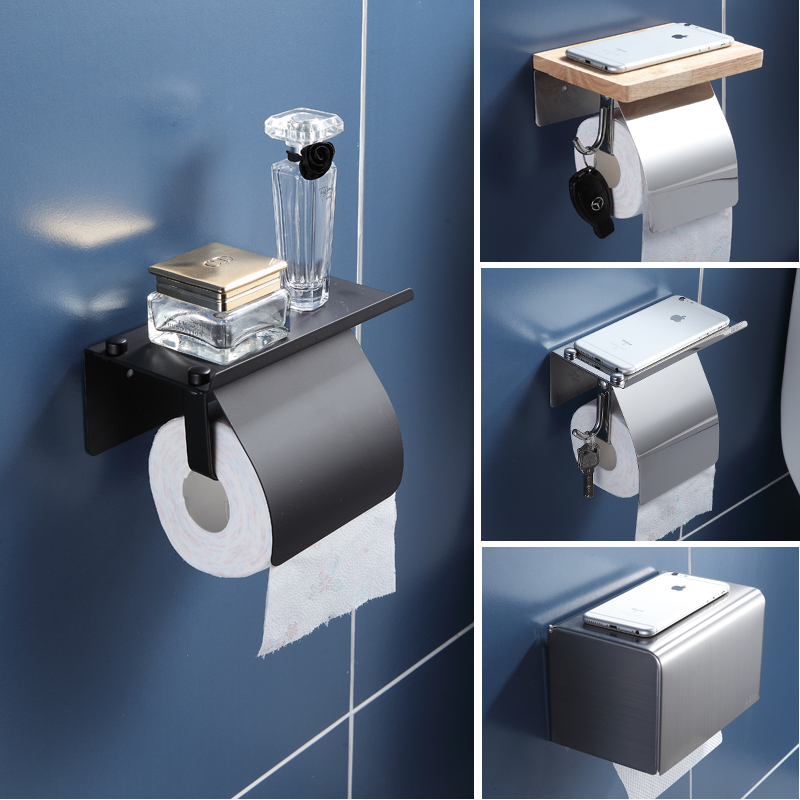 Free Punch Stainless Steel Paper Towel Rack Toilet Paper Towel Box Washroom Hung Wall-mounted Shelve Toilet Roll Rack-Taobao