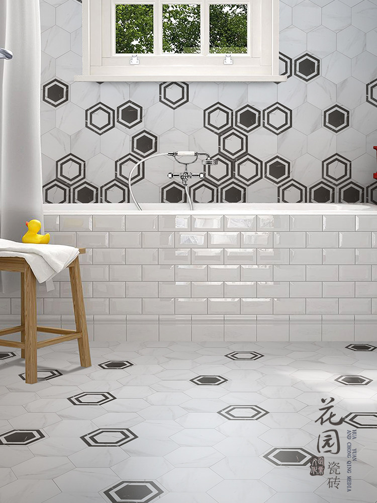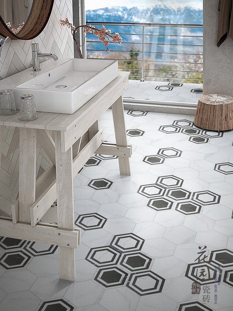 Nordic Hexagonal Brick Marble Veins Jazz White Hexagon Kitchen Makeup Room Non-slip Floor Tiles Balcony Wall Brick Tiles