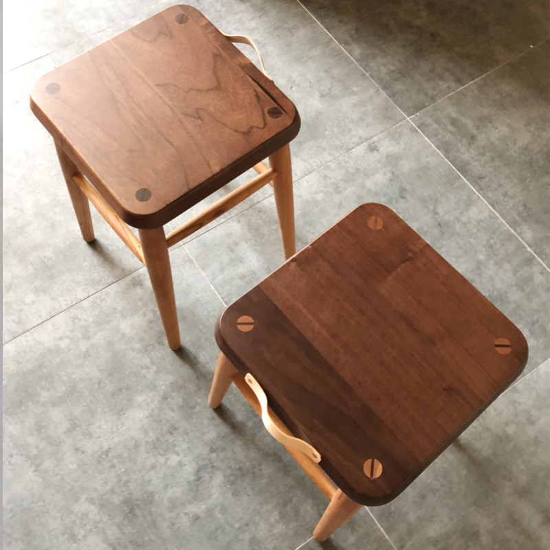 Sanfu Furniture Original Solid Wood Nordic Mortise And Mortise Makeup Chair Cherry Wood Black Walnuts Dwarf Bench Small Family Type Of Shoe Changing Stool