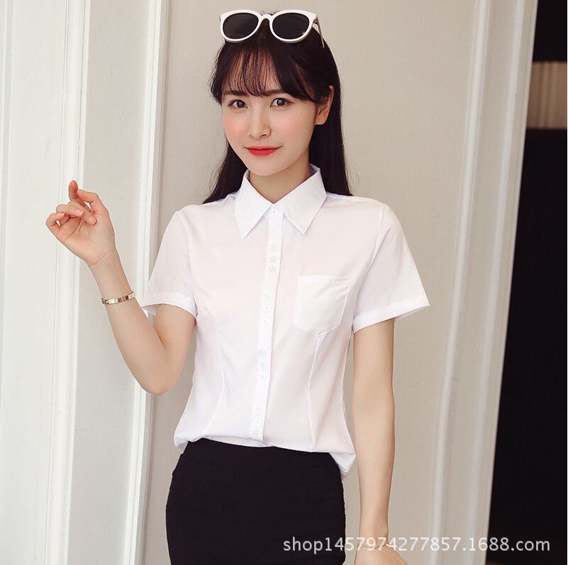 White Shirt Woman 2022 Summer Dress Work Suit Authentic Korean version Overalls Summer work clothes Short sleeves Shirt interview