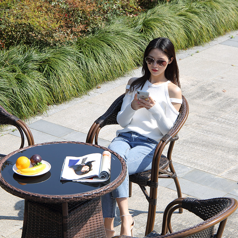 Yard Table And Chairs Outdoor Leisure Patio Cane chair Three sets open-air garden Outdoor Rattan chair Tie-art suit
