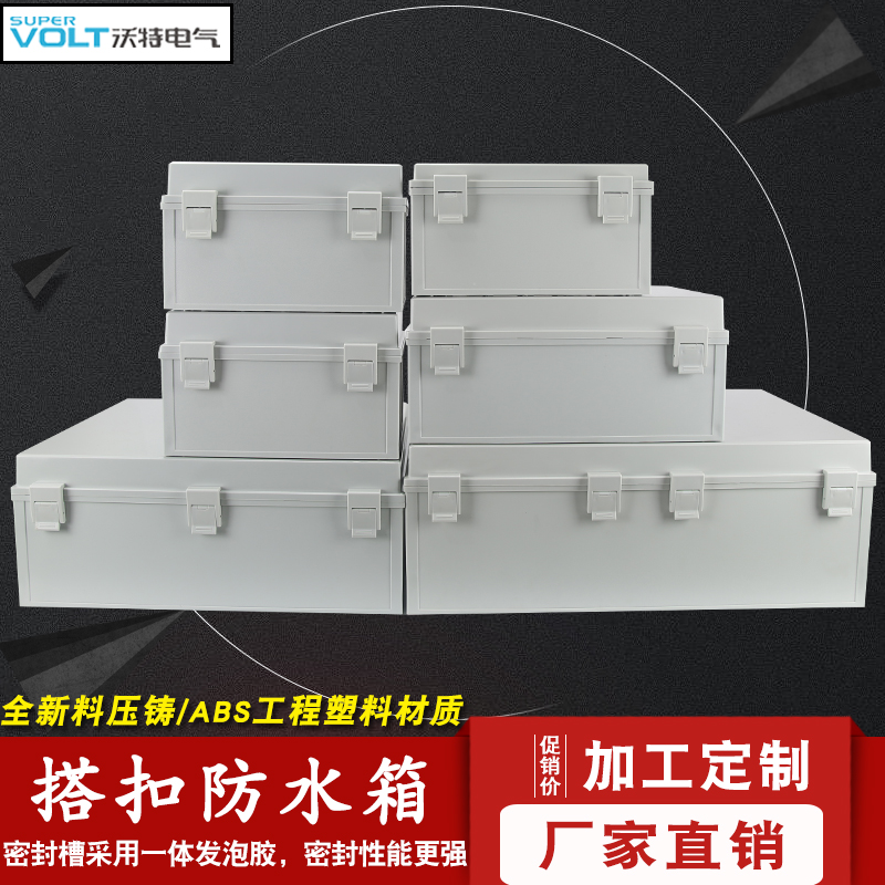 Watt buckle waterproof junction box abs plastic clamshell waterproof box with hinge power box rainproof sealed box