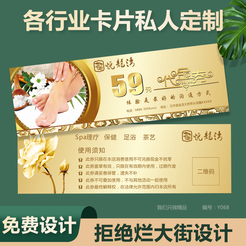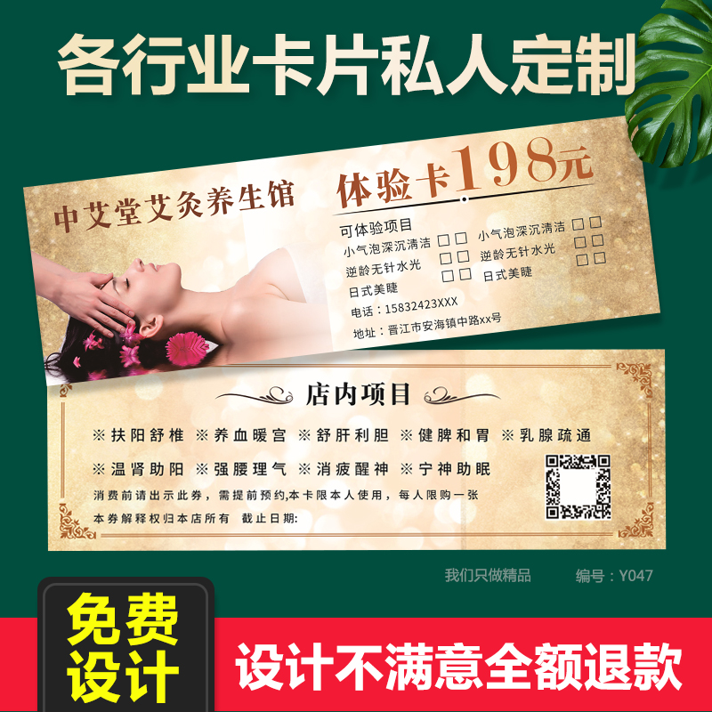 Beauty salon Chinese medicine health care Foot therapy moxibustion skin management experience card voucher Extension card coupon customization