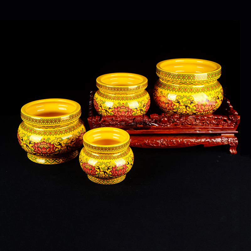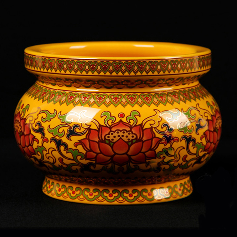 Tang color ceramic real gold red yellow lotus flavor furnace household ceramic furnace Buddhist ceramic fixture