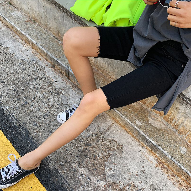 Black denim shorts women's 2020 spring net red high waist Korean version of stretch slim tight riding pants pants pants
