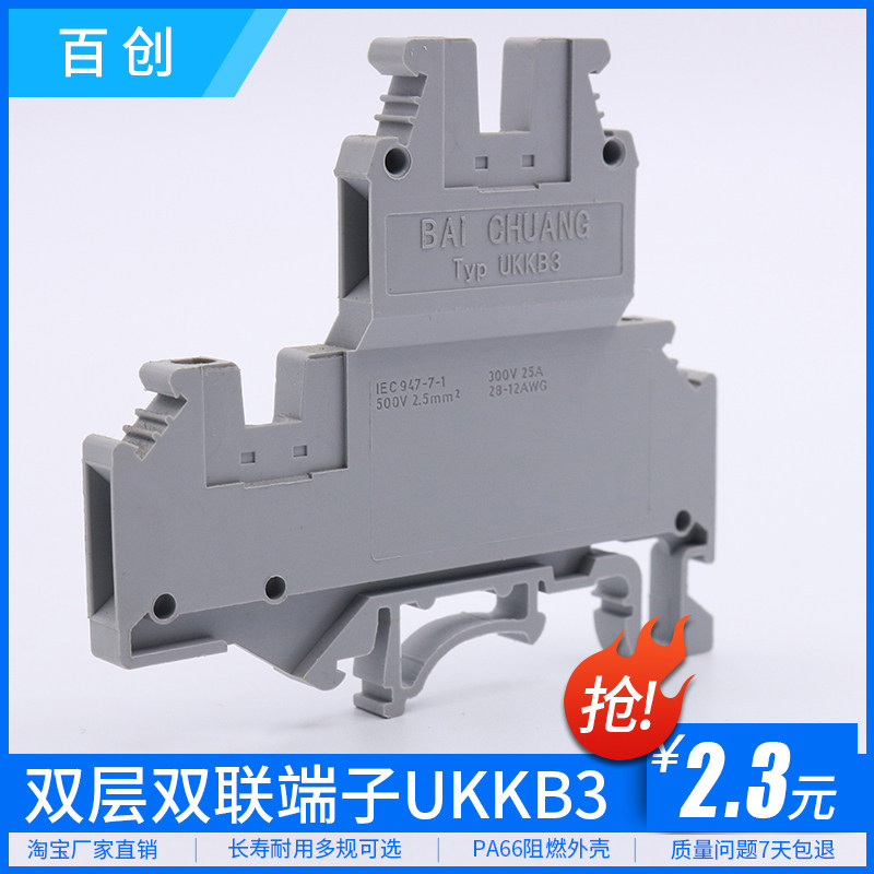 Manufacturer direct rail type combined wiring terminal 2 5MM terminal row UKKB3 thickened copper piece without sliding silk double layer