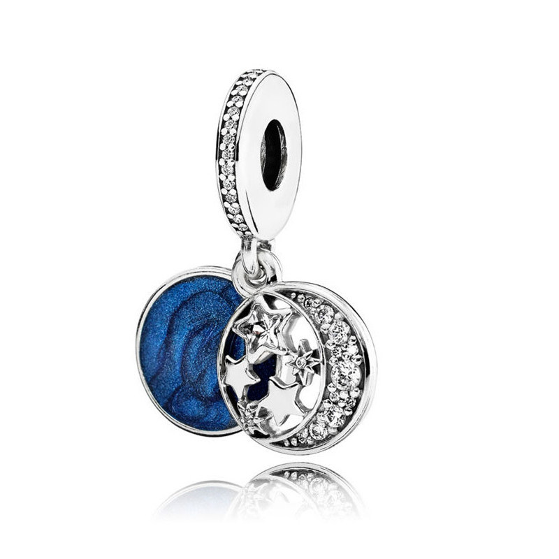 Bead color optional Starry Moon Night Sterling Silver Charm Dream Catcher S925 Silver Charm Peach Blossom Pendant 925 Sterling Silver Peach Blossom Beads One Fixed Clip Snowflake Pendant Star Moon Accessories