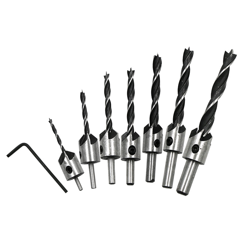 Three-pointed woodworking sunk head drilling suit for undercutting drill bit woodworking bevelling machine pointing to drill high-speed net drill