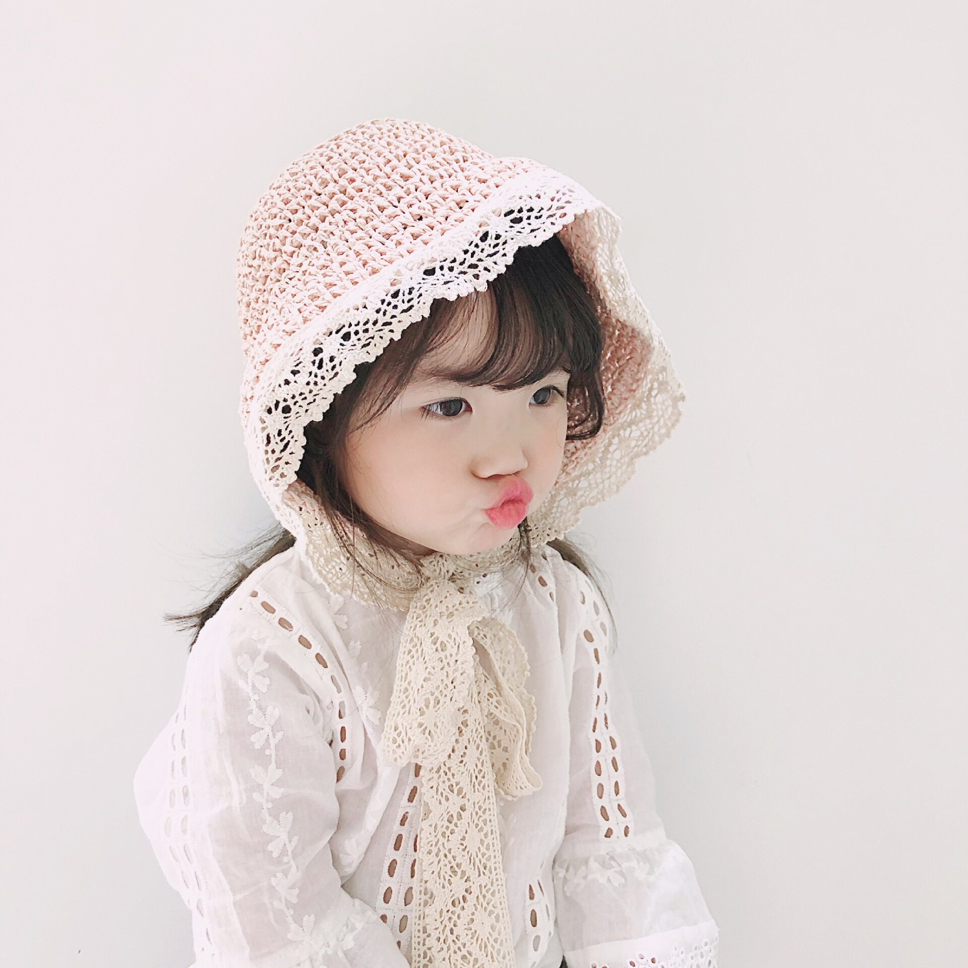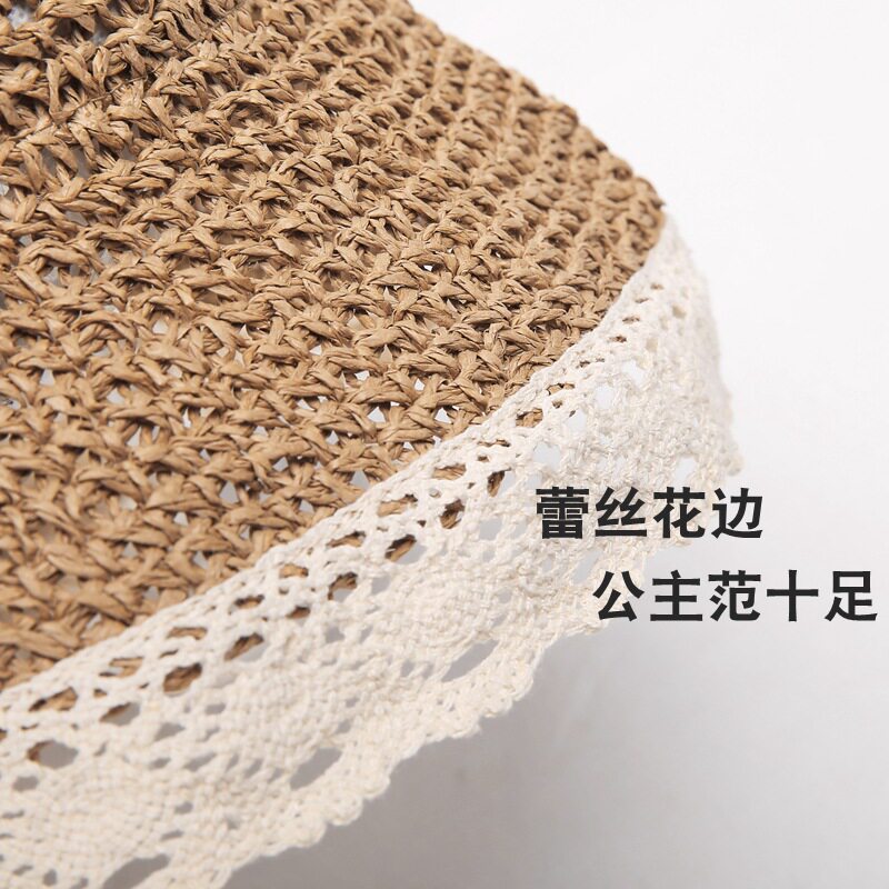 Handmade Children Hat Weave Fisherman Hat Spring Summer Girl Lace Lace Straw Hat 2-7 Year Old Sun Hat Parenting Hat