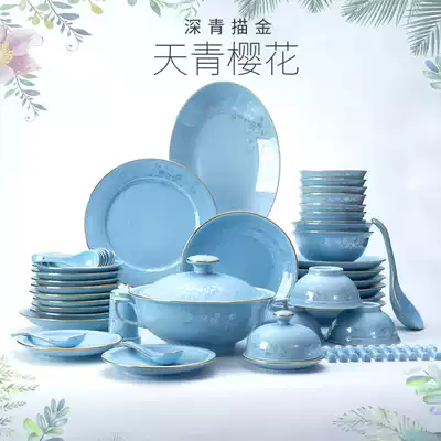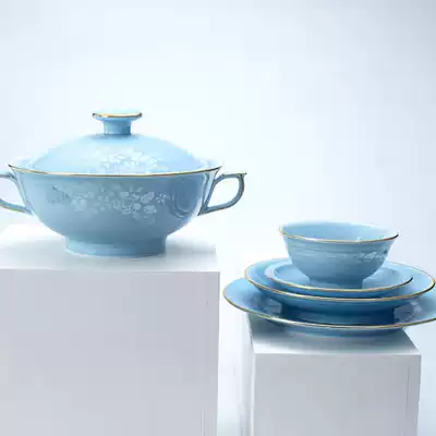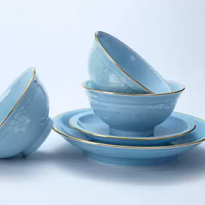 Collection shadow celadon tableware set Household Jingdezhen Chinese phnom Penh bowl combination high-end simple bowl gift