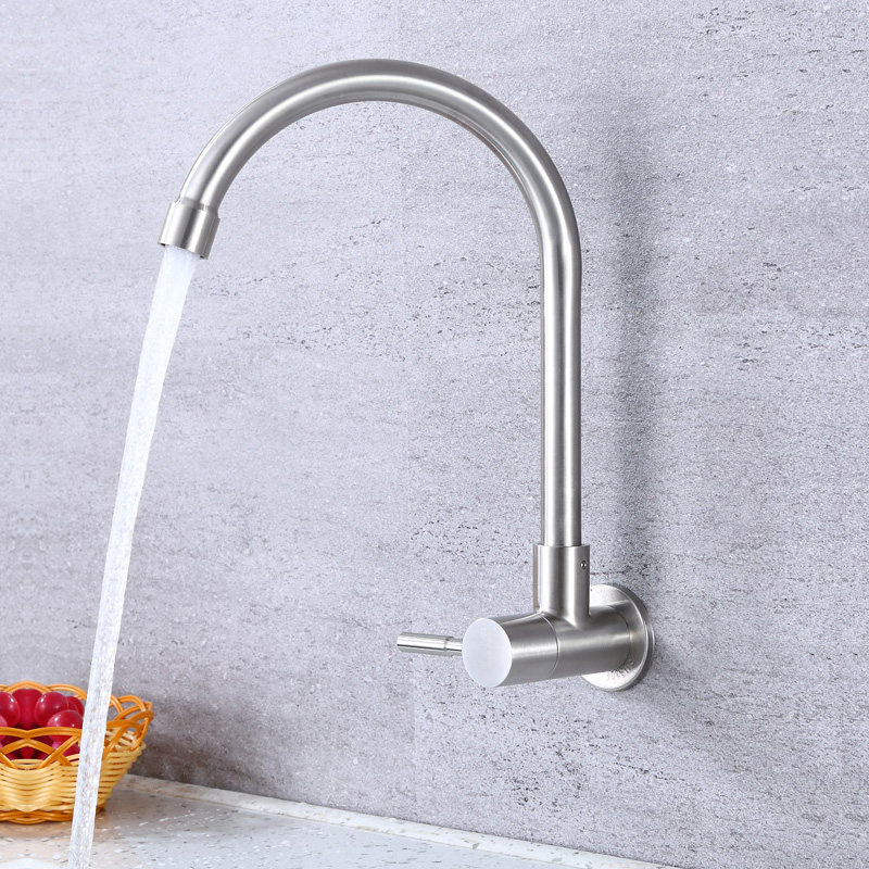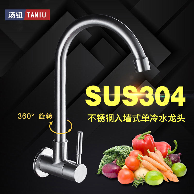 Soup button kitchen sink SUS304 stainless steel single cold faucet mop pool balcony into the wall rotary faucet