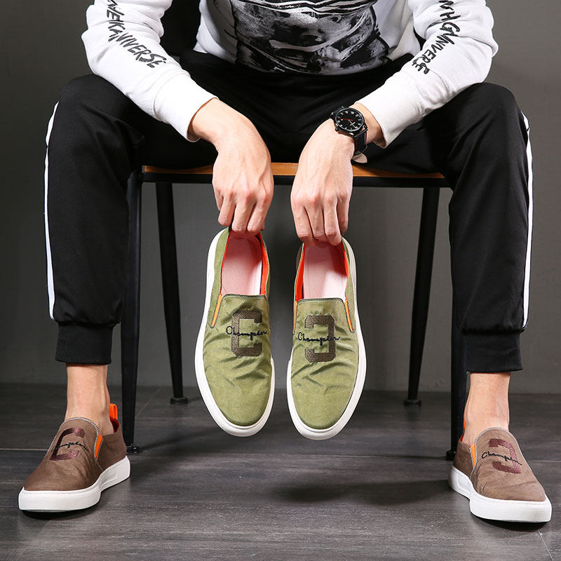 Autumn and winter men's shoes breathable canvas shoes men's Korean version slip-on lazy shoes men's trendy shoes skate shoes casual loafer shoes