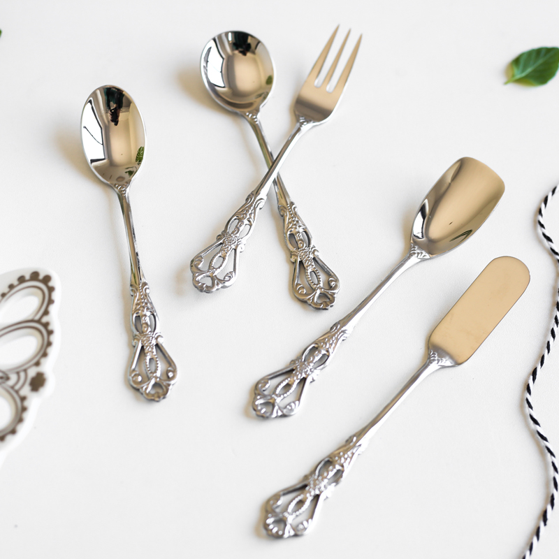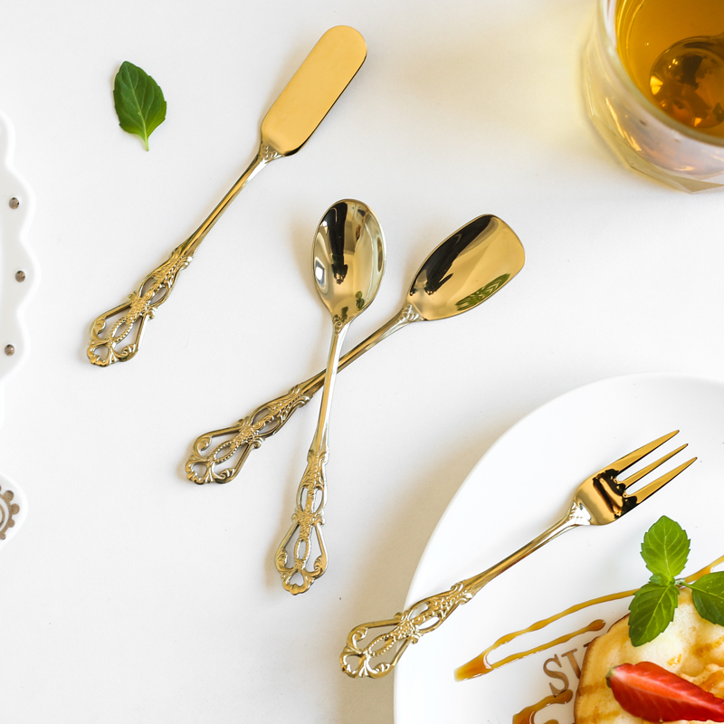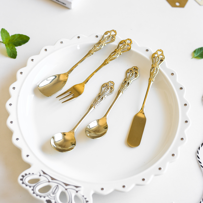Life Trees Ins Retro Wind Hollowed-out Stainless Steel Sweet Fork Spoon Coffee Spoon Western Meal Cake Spoon Bull Oil Rag Knife