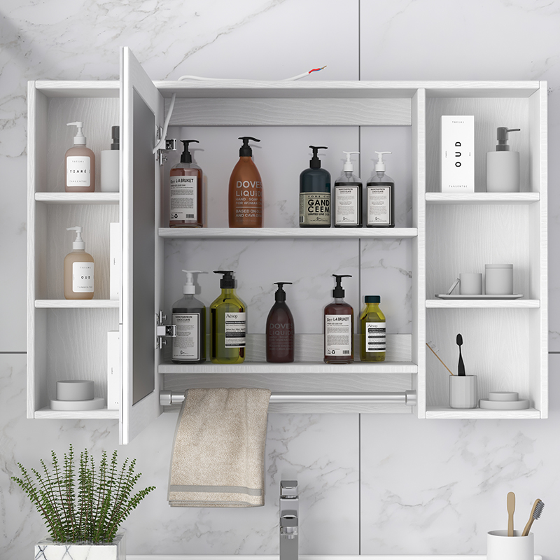 Smart mirror cabinet wall-mounted defog anti-fog Bluetooth mirror with shelf bathroom solid wood vanity mirror cabinet with light