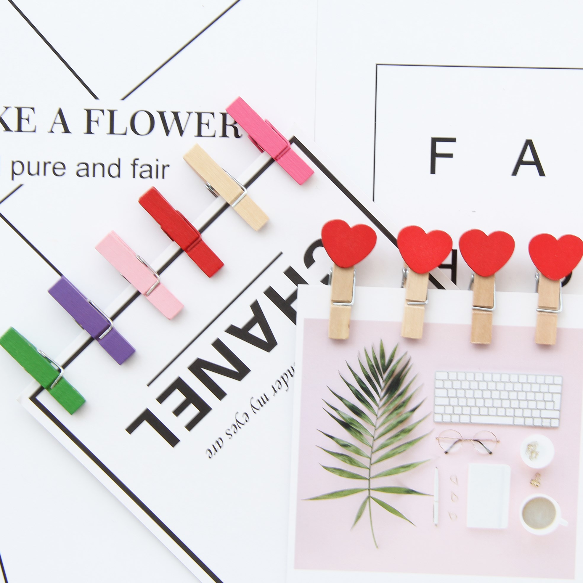 Color photo clip wooded small clip Mini photo small wood clip photo clip Hemp Rope Clip Photo Wall Hanging D-Taobao