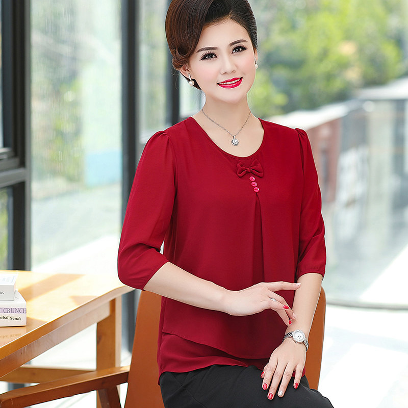 Mother summer two-piece fashion 2021 new middle-aged and elderly women spring dress short sleeve T-shirt foreign style old clothes