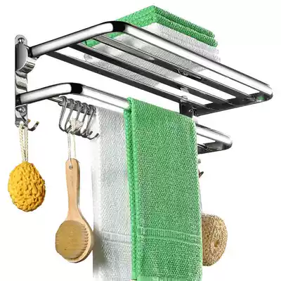 Towel rack non-perforated stainless steel dressing room rack folding towel rack toilet shower wall wall-mounted