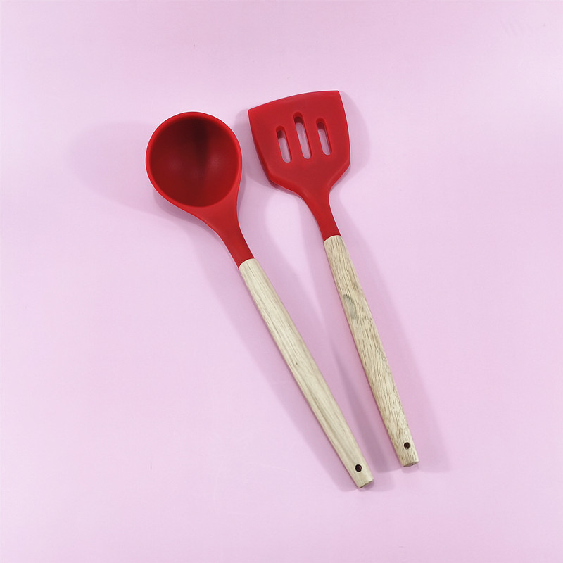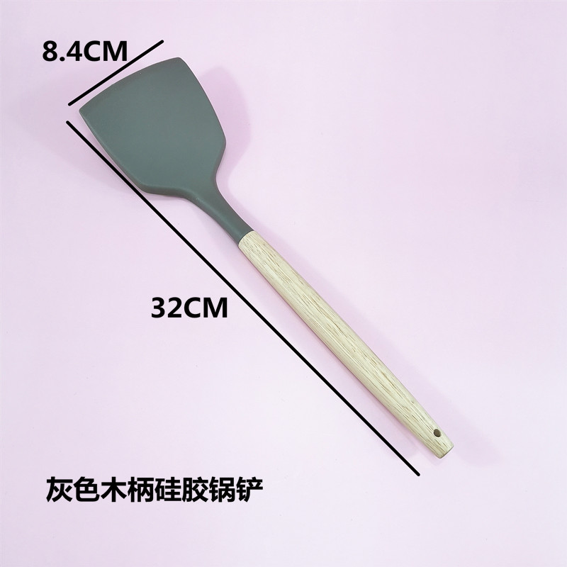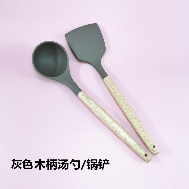 Rubber wood handle silicone spatula cooking spatula non-stick pot special spatula spoon household kitchen utensils 2 sets - Taobao